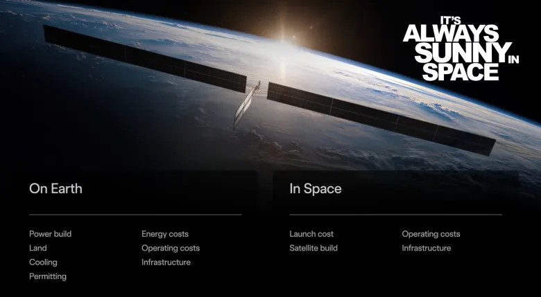 他重申此前观点:凭借太空中充足的太阳能与不受限制的空间资源,最快 2 到 3 年内,太空数据中心将比地面数据中心更具成本效益。