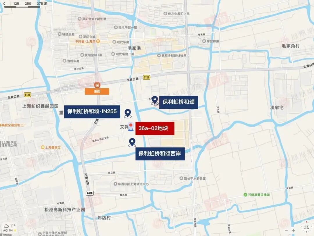 该地块位于青浦重固板块,北侧是保利虹桥和颂·IN255,南侧是保利虹桥和颂西岸——恰好被保利的两个项目夹在中间。